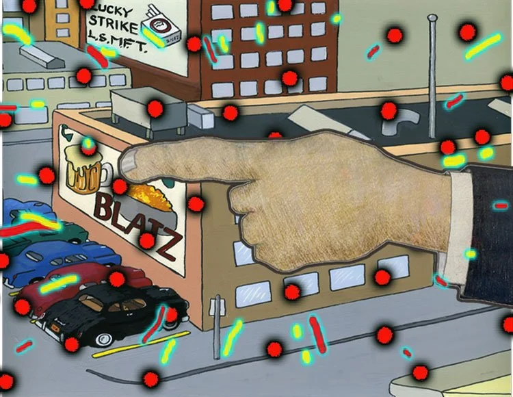 I am a sign painter. Now the signs have lost their meaning. I have always been interested in the dialectic of ‘horror’ and ‘’humor’, ‘Ha – ha!’/’Oh No!’. The synthesis of that will continue develop over the remaining years of our lives, and beyond. In these whirlwind, late days of a presidential election, the outcome of which threatens to crack the ‘unum’, scatter the “pluribus” and make the “e” into a “screeeeem” weighs on me as I draw and edit this onslaught.
